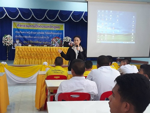 วันที่ 13 กุมภาพันธ์ 2561 เวลา 13.30 น. ผู้แทน ปปส.ภ.8 ประกอบด้วย นายพัฒนะ รื่นเริงใจ นวค.ชก. น.ส.สุนิตา วงษ์สวัสดิ์ นวค.ชก. น.ส.อัจฉรา วงศ์คต นสส.ปก. น.ส.สุรัตน์ ไกรกิจราษฎร์ จพง.ธุรการปฏิบัติงาน และ น.ส.เบญจวรรณ คงมาก เจ้าหน้าที่วิเคราะห์นโยบายและแผน ร่วมโครงการผนึกพลังเยาวชนไทยต้านภัยยาเสพติด ในกิจกรรม การฝึกอบรม ส่งเสริมความรู้ด้านยาเสพติดในนักเรียนแกนนำ นักเรียนกลุ่มเสี่ยงและการเฝ้าระวัง ประจำปีการศึกษา 2560 ณ โรงเรียนเทศบาล 4 (วัดโพธาวาส) อ.เมือง จ.สุราษฎร์ธานี ในการนี้ ปปส.ภ.8 ร่วมกับ ศอ.ปส.จ.สุราษฎร์ธานี ได้บรรยายให้ความรู้ในหัวข้อ การสร้างความตระหนักรู้ถึงโทษและพิษภัยของยาเสพติด แก่นักเรียนระดับชั้นมัธยมศึกษาตอนต้น และ ชั้นมัธยมศึกษาตอนปลาย จำนวน 55 คน และภายหลังจากการบรรยาย มีการจัดกิจกรรมการเฝ้าระวังปัญหายาเสพติดในสถานศึกษาโดยมีการตรวจปัสสาวะนักเรียนกลุ่มเสี่ยง ผลการตรวจ ไม่พบสารเสพติด