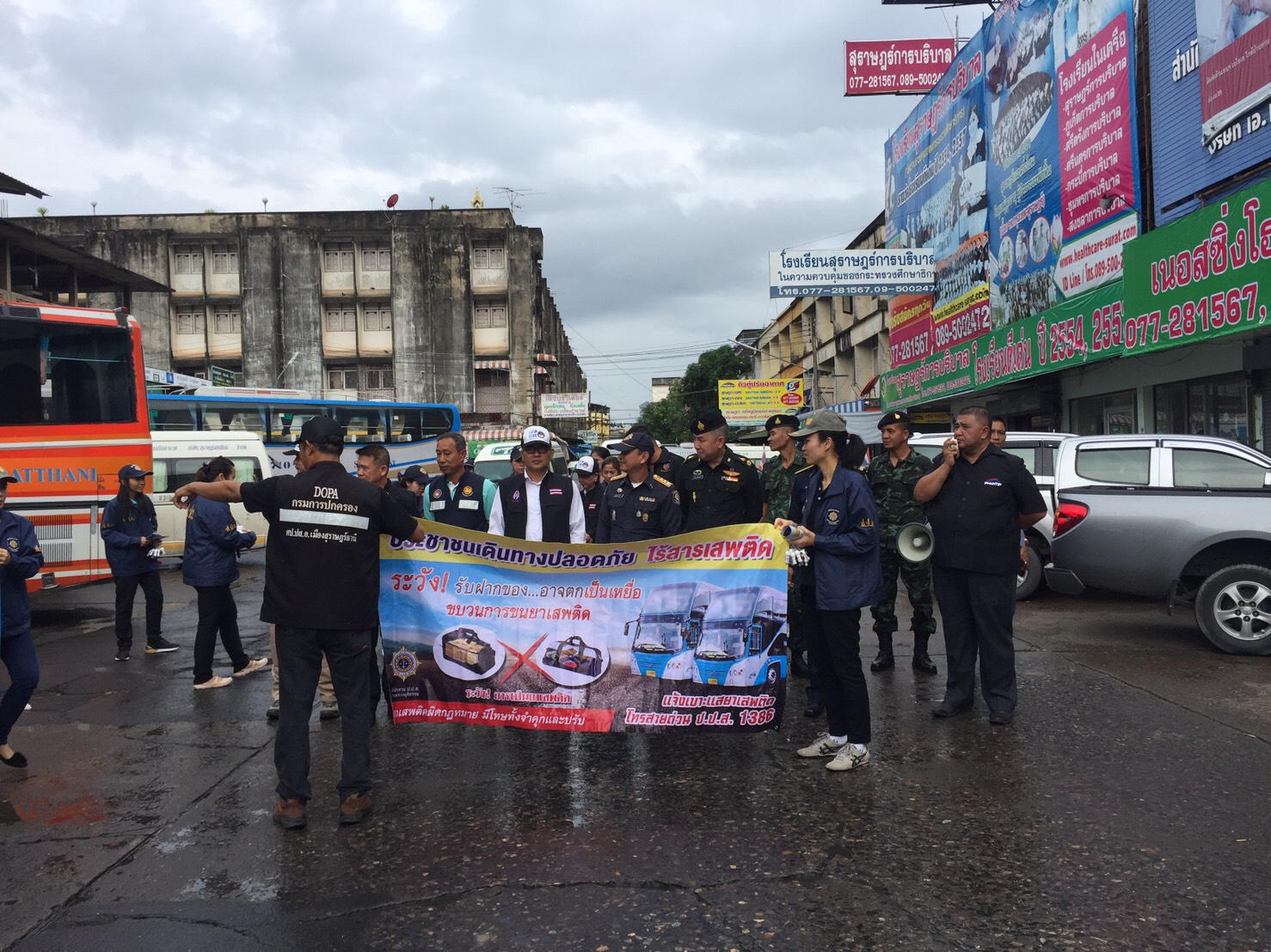 สนธิกำลังเจ้าหน้าที่ ปปส. ทหาร กอ.รมน. ปกครอง ขนส่ง ตำรวจ สาธารณะสุข รวมกว่า 60 นาย ร่วมตรวจสอบสารเสพติดพนักงานขับรถโดยสารระยะสั้น บริเวณตลาดเกษตร 2 เทศบาลนครสุราษฎร์ฯเมื่อเวลา 09:00 น.วันที่ 29 ธ.ค.60 ที่ตลาดเกษตร 2 อ.เมือง จ.สุราษฎร์ธานี นายสราวุธ ภัคดี ผอ.อำนวยการบังคับใช้กฎหมาย สนง.ปปส.ภ.8สนธิกำลังเจ้าหน้าที่ ปปส. ทหาร กอ.รมน. ฝ่ายปกครอง ขนส่ง ตำรวจ และสาธารณะสุข รวมกว่า 60 นาย ร่วมตรวจสอบสารเสพติดพนักงานขับรถโดยสารระยะสั้น บริเวณตลาดเกษตร 2 เทศบาลนครสุราษฎร์ธานี ตามมาตรการควบคุมความปลอดภัยในการใช้รถโดยสารสาธารณะในช่วงเทศกาลปีใหม่