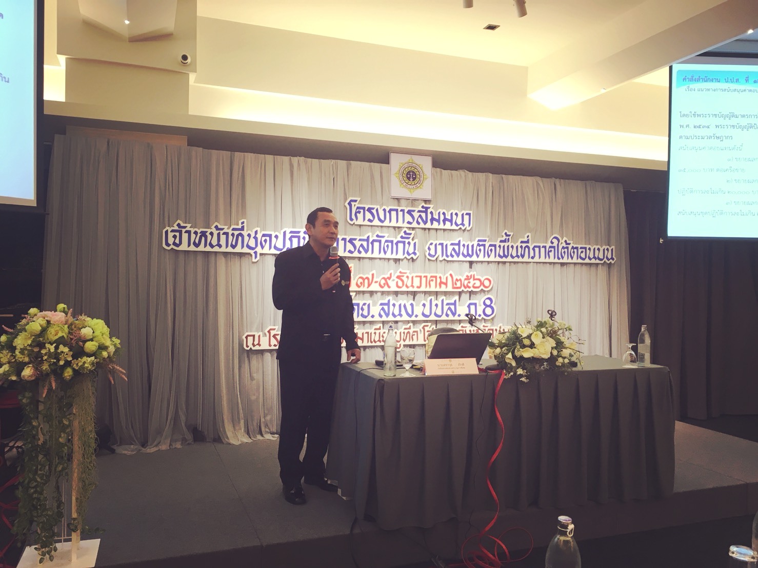 ​วันที่ 7 ธันวาคม 2560 สำนักงาน ปปส.ภ.8 จัดโครงการสัมมนาเจ้าหน้าที่ชุดปฏิบัติการสกัดกั้นยาเสพติดพื้นที่ภาคใต้ตอนบน โดยมีวัตถุประสงค์เพื่อให้ผู้เข้ารับการสัมมนามีการแลกเปลี่ยนข้อมูล ข่าวสาร ประสบการณ์ และได้อภิปรายการพัฒนาการสืบสวนสกัดกั้นยาเสพติดร่วมกัน และเพื่อให้ผู้เข้ารับการสัมมนามีการพัฒนาองค์ความรู้ด้านการสกัดกั้นยาเสพติดเพิ่มมากขึ้น ณ โรงแรมลอฟท์ มาเนีย บูติค โฮเตล อ.เมือง จ.ชุมพร โดยมี พ.ต.อ.พรพันธ์  ทินขำ รอง ผบก.ภ.จว.ชุพพร เป็นประธานในพิธีเปิด ซึ่งโครงการมีกำหนดจัดตั้งแต่วันที่ 7- 9 ธันวาคม 2560 มีผู้เข้ารับการฝึกอบรมจากตำรวจภูธรภาค 8, ตำรวจตระเวนชายแดน 41,42, บช.ปส., หน่วยเฉพาะกิจกรมทหารราบที่ 25 และเจ้าหน้าที่ ปปส.ภ.8 รวมทั้งสิ้น 65 นาย