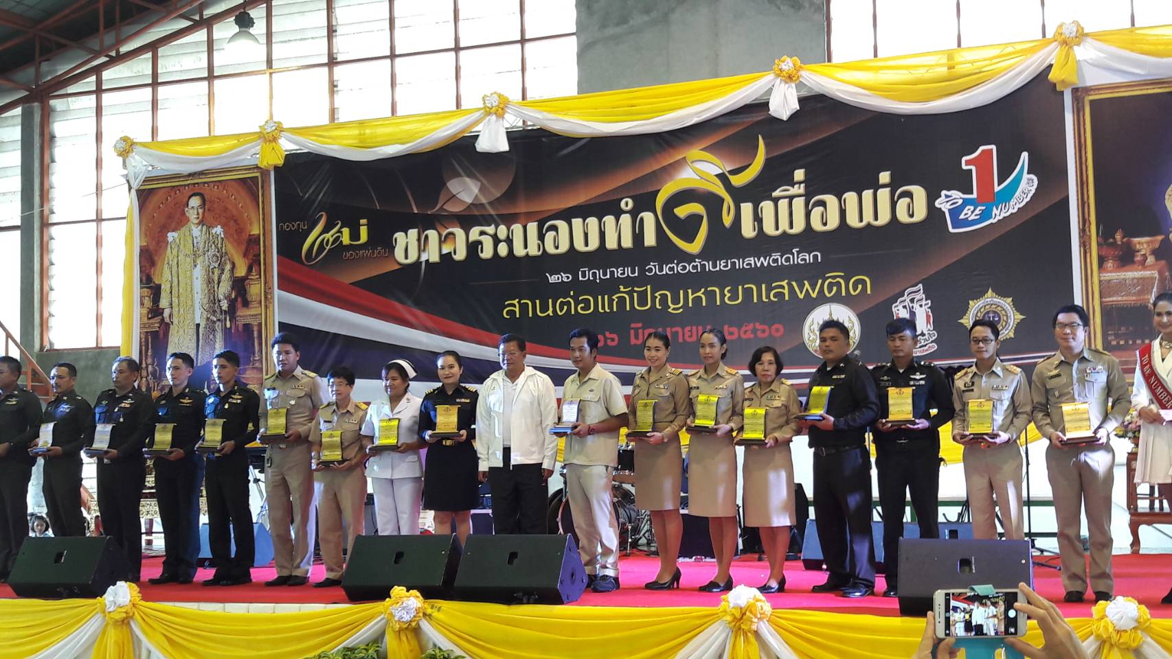 วันที่ 26 มิถุนายน 2560 สำนักงาน ปปส. ภ. 8  ร่วมกับหน่วยงานภาคีจังหวัดระนอง จัดกิจกรรมโครงการรวมพลัง "ทำดีเพื่อพ่อ สานต่อแก้ปัญหายาเสพติด" เนื่องในวันต่อต้านยาเสพติดโลก ประจำปี 2560 เพื่อให้เกิดการรวมพลังสร้างกระแสของการมีส่วนร่วมจากทุกภาคส่วนในการแก้ไขปัญหา