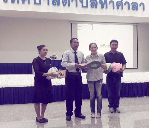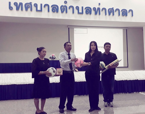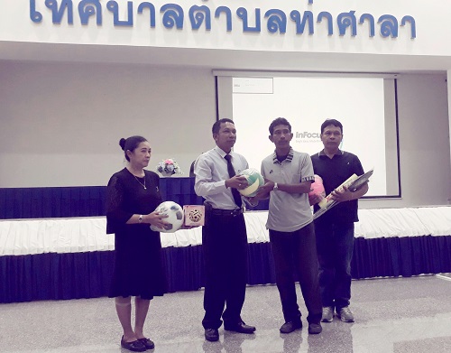 วันที่ 27 มิถุนายน 60 เวลา 08.30 - 12.00 น. นายศิริวัฒนา ชาติภิรมย์ นวค.ชำนาญการ ผู้แทน ปปส.ภ.8 เป็นวิทยากรบรรยายการขับเคลื่อนแผนประชารัฐฯ คนะกรรมการชุมชนเข้มแข็ง ม/ช และมอบอุปกรณ์กีฬาให้ศูนย์กีฬาประจำตำบล ณ ห้องประชุมเทศบาลตำบลท่าศาลา จัดโย ศป.ปส.อ.ท่าศาลา