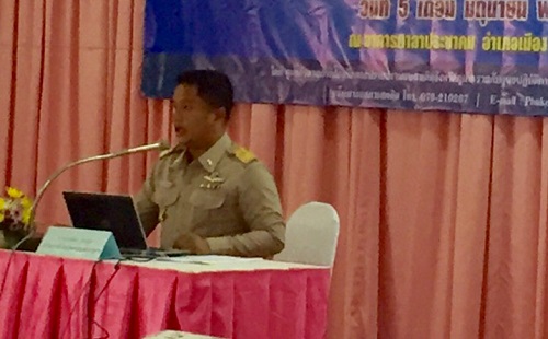 พิธีเปิดได้รับเกียรติจาก นายนรภัทร ปลอดทอง ผู้ว่าราชการจังหวัดภูเก็ต เป็นประธานเปิด ผู้เข้าร่วมอบรมประกอบด้วยปลัดอำเภอ ทั้ง 3 อำเภอ กำนัน ผู้ใหญ่บ้าน ผู้นำชุมชนในเขตเทศบาลนครภูเก็ต เทศบาลเมืองป่าตอง อสม. อส. ชรบ. และ 25 ตาสับปะรด รวม 220 คน ในการนี้ ทางจังหวัดได้ออกคำสั่งเป็นชุดปฎิบัติการในพื้นที่ บูรณาการร่วมกับอำเภอเพื่อเป็นกำลังสำคัญในการเฝ้าระวังและแก้ไขปัญหายาเสพติดในพื้นที่ต่อไป