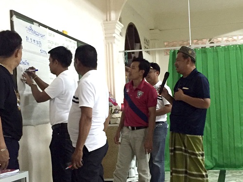 2. ดำเนินการขั้นตอนที่ 3 ทำประชาคมครั้ง ที่ 1 เพื่อคัดเลือกคณะกรรมการหมู่บ้าน บ้านโคกไคร หมู่ 1 ต.มะรุ่ย อ.ทับปุด จ.พังงา และ ร่วมกินข้าวถาดกับผู้นำและชาวบ้าน ณ มัสยิดบ้านโคกไคร