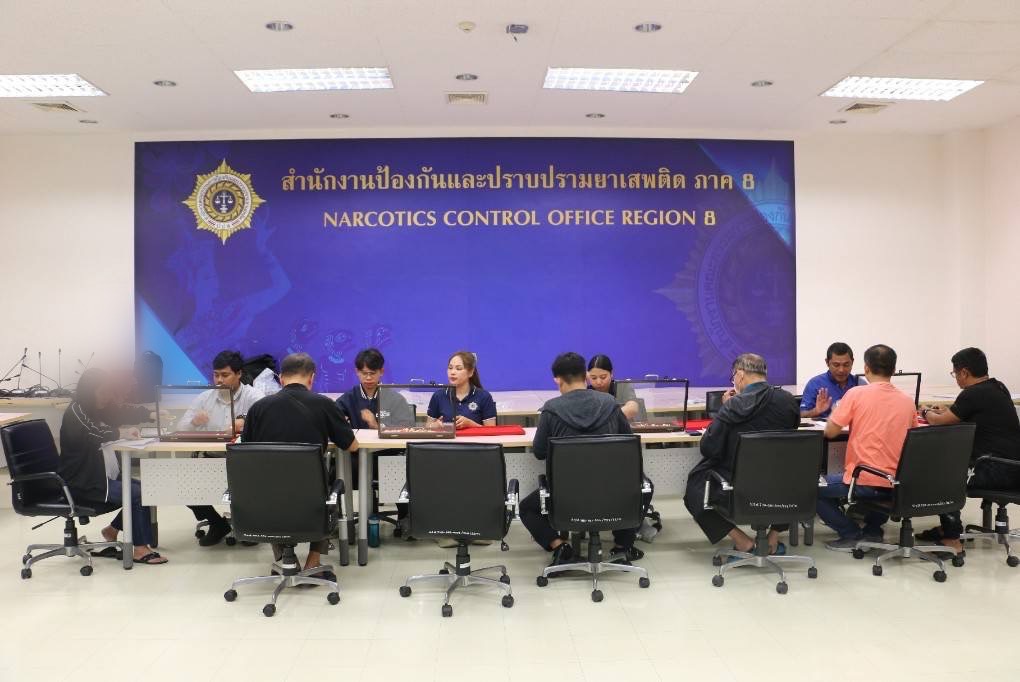 ณ สำนักงานป้องกันและปราบปรามยาเสพติด ภาค 8 เลขที่ 102/27 หมู่ที่ 9 นิคมพัฒนาซอย 2 ตำบลขุนทะเล อำเภอเมือง จังหวัดสุราษฎร์ธานี