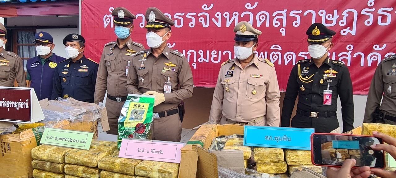 ปปส.ภ.8 ร่วมแถลงข่าวผลการจับกุมคดียาเสพติดรายสำคัญ และร่วมพิธีปล่อยแถวระดมกวาดล้างอาชญากรรม ในพื้นที่จังหวัดสุราษฎร์ธานี